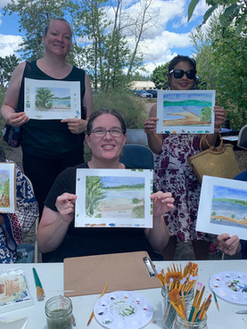 Beginner friendly classes includes all supplies. Most locations have picnic tables, and camp chairs will be provided. However, you're welcome to bring your own chair and supplies. Classes Include a pre-sketched drawing of our subject for your specific class. This ensures you take home something you love.